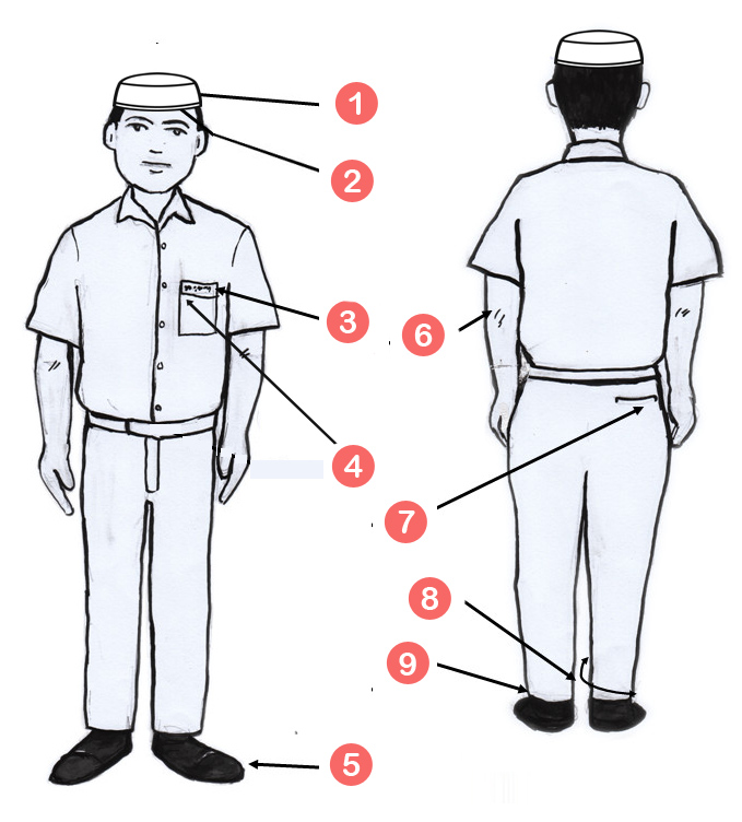 - The color of the shoes should be black, and shoes with different designs should not be worn.